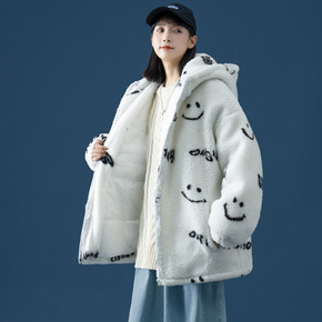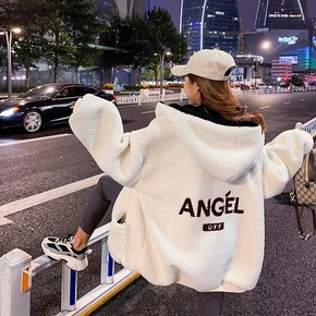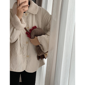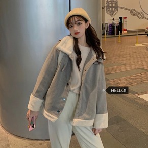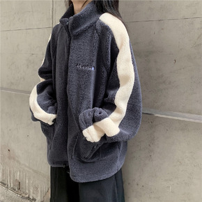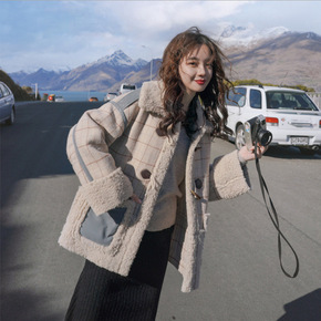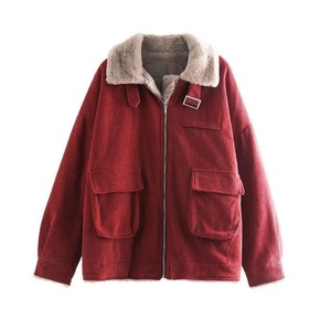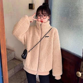 羊羔毛工装棉服女秋冬新款大码小个子宽松长袖保暖加厚...