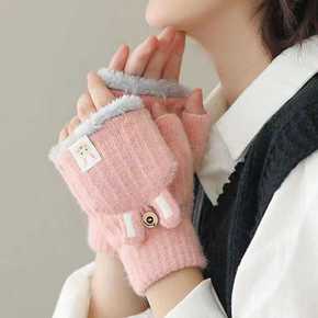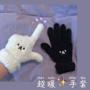 日系少女手套冬季保暖分指刺绣半边绒可爱韩版卡通户外...