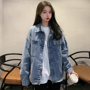 初中生牛仔外套女春秋装韩版宽松12中学生15岁少女...