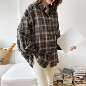 复古格子宽松显瘦学生衬衫外套女秋季韩版休闲衬衣潮1...