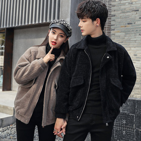 2020新款秋冬翻领仿雪貂绒短款毛呢大衣宽松休闲外...