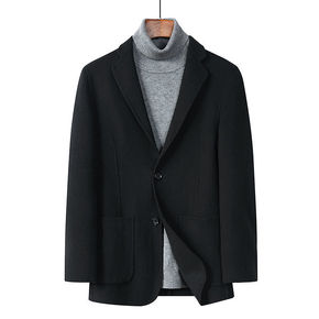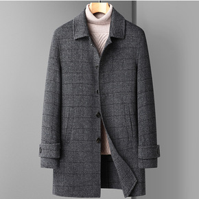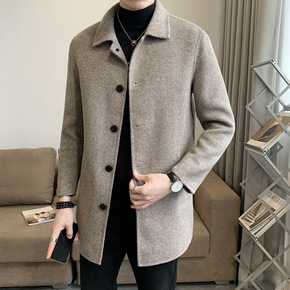 高端毛呢大衣男士羊毛风衣双层加厚中长款羊绒双面呢外...