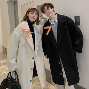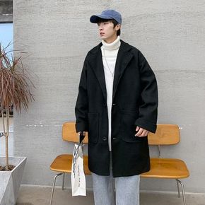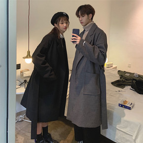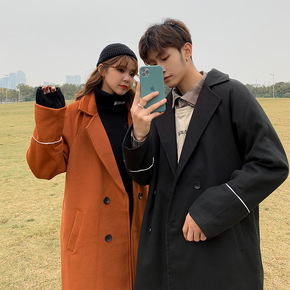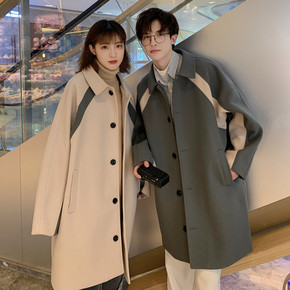 2021冬季新款毛呢大衣港风中性款青少年潮流休闲宽...