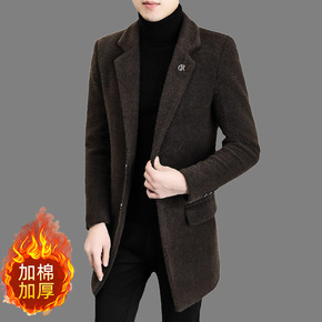 冬季热卖 时尚绅士加厚金貂绒仿貂毛呢大衣 冬装中长...