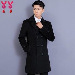 新款男士羊绒大衣加长款过膝风衣韩版修身单排扣外套毛...