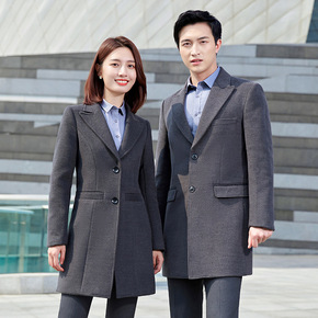 秋冬装夹棉加厚职业装毛呢大衣男女同款外套女修身售楼...