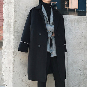 秋冬季风衣男中长款潮流帅气情侣呢子外套男宽松韩版潮...