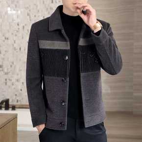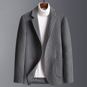 中年商务毛呢西装外套2020秋冬新款简约时尚纯色羊...