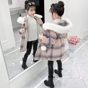 女童毛呢外套秋冬2021新款中大童加厚衣服儿童装冬...