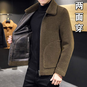羊剪绒冬季外套两面穿皮毛一体男装夹克新款毛呢大衣加...