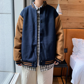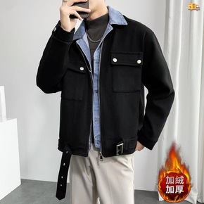 2022新款冬季假两件毛呢外套男短款加绒加厚潮流宽...