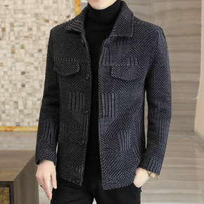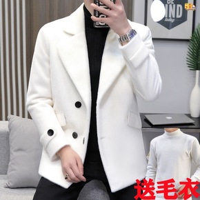 秋冬季男士毛呢大衣短款小个子呢子夹克男士仿水貂绒小...