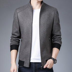 羊毛夹克2020秋冬新品中青年休闲拉链立领加厚毛呢...