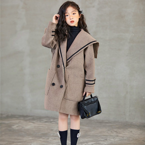 女童春秋2019新款中大童双面呢子大衣韩版洋气儿童...