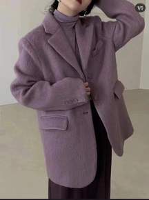 【返单】韩版紫色短款双面羊绒大衣女21冬新款宽松西...