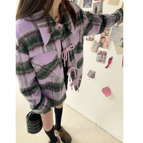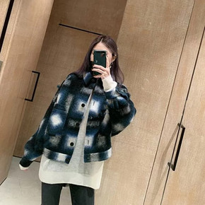 现货日韩系短款外套显瘦毛呢外套2021秋冬新款宽松...