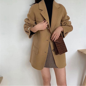 双面羊绒大衣女韩版2021新款100羊毛单排扣短款...