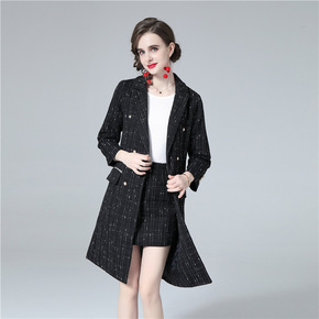 两件套秋冬毛呢套装女加厚西装领中长款呢子大衣外套搭...