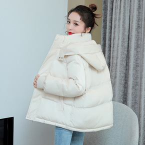连帽女短款小个子羽绒棉服2021秋冬新款宽松收腰加...