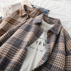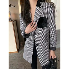 复古黑白千鸟格~通勤宽松薄款一粒扣羊毛小西装外套2...