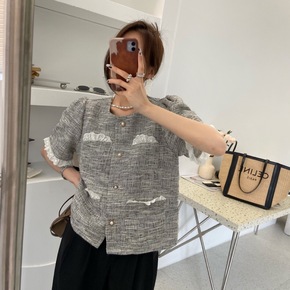 BW36353 双排扣编织毛呢短外套气质名媛小个子...