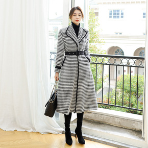 大码女装秋冬款夹绒千鸟格毛呢外套 胖mm中长款显瘦...