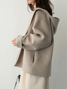 秋冬新款韩版连帽毛呢外套女短款宽松纯色小个子休闲呢...