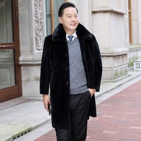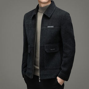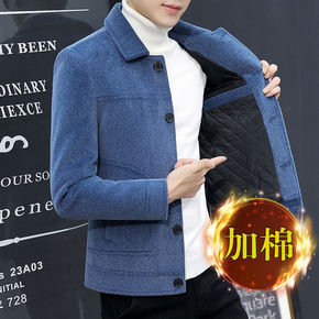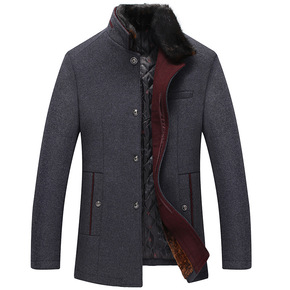 秋冬中老年男毛呢爸爸装男士中年立领毛领加绒毛呢加厚...