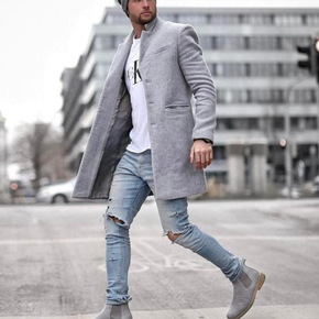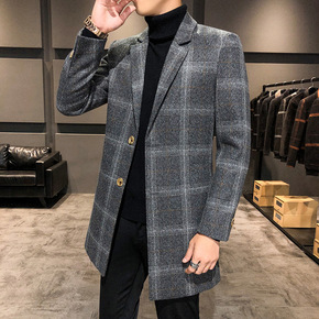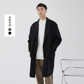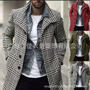 2021跨境亚马逊速卖通男装春秋新款中长款呢料大衣...