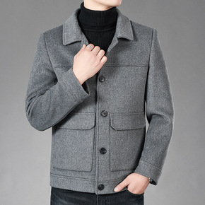 秋冬新款男士双面尼大衣中青年休闲白鸭绒内胆可脱卸毛...