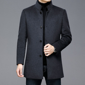 2021秋冬新款毛呢大衣男商务长款过漆加棉大衣男男...