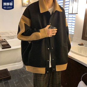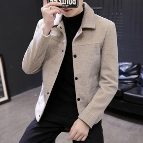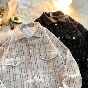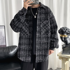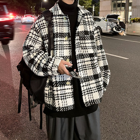 格子毛呢外套男秋季宽松潮牌慵懒风夹克春秋ins韩版...