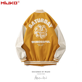 MIJKO男装女秋冬新品棉花立体刺绣夹克毛呢拼色男...