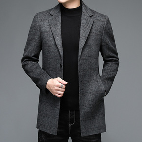 2021新款毛呢大衣男式商务修身中长款风衣男士外套...