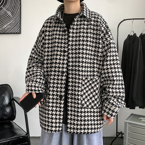 2019外贸秋冬新款 千鸟格时尚立领男士休闲复古潮...