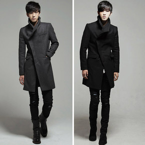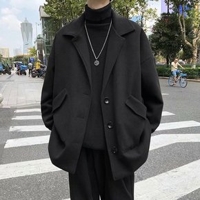 秋季高档毛呢外套男韩版潮流日系炸街风衣修身帅气复古...