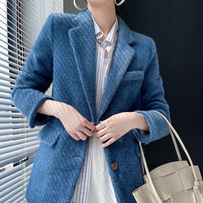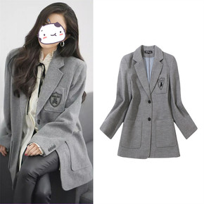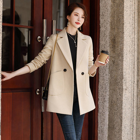 2022春夏新款韩版宽松显瘦中长款毛呢西装外套女气...
