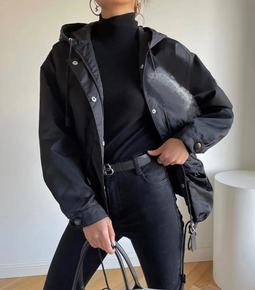 22SS早春新款连帽再生尼龙系列外套减龄少女大口袋...