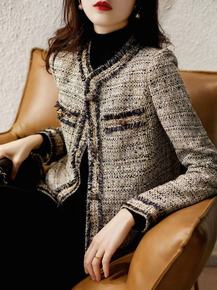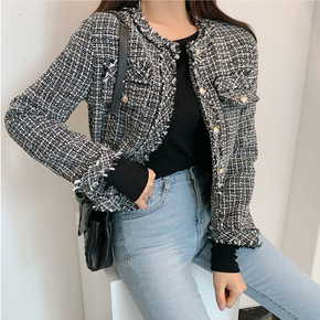 任小艺复古小香风粗花呢外套小个子秋装2021年新款...