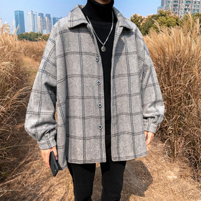 日系春秋季毛呢格子大衣男韩版潮流ins港风百搭复古...