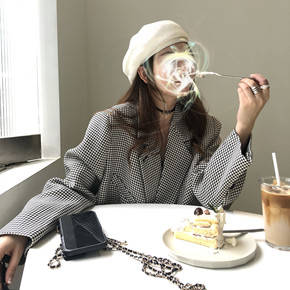 加厚腰带款格子小西装外套女秋冬装夹棉加棉中长收腰毛...