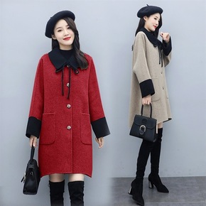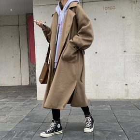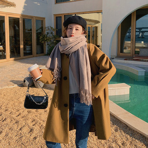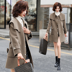 休闲高品质呢子大衣女中长款2021秋冬新款韩版宽松...