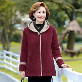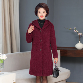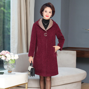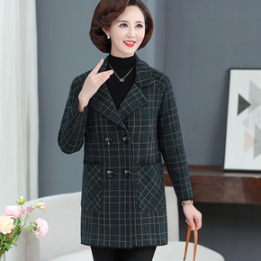 中年妈妈秋冬装中长款格子洋气西装领大衣中老年女装针...