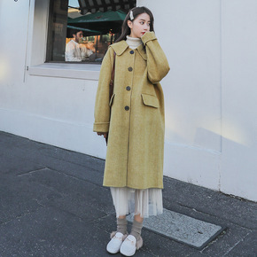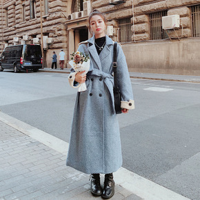 呢子大衣女中长款年秋冬季新款宽松过膝韩版毛呢外套...