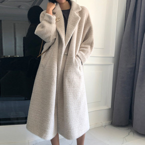 水貂绒大衣女中长款冬加厚韩版宽松高级感羊毛呢子外套...