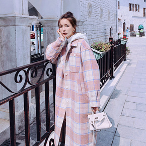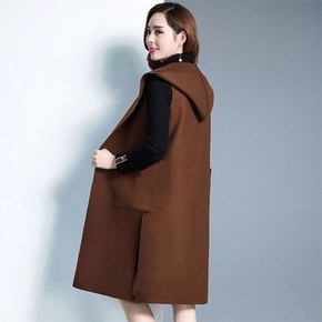 春新款上衣女毛呢外套连帽长马甲中长款韩版宽松学生呢...