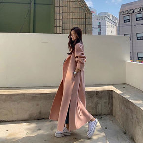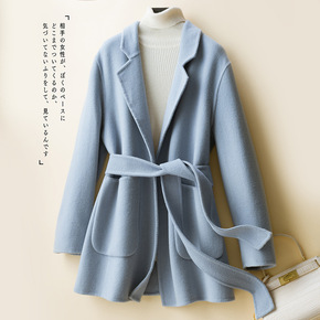 小个子中长款腰带双面呢子大衣女纯羊毛修身显瘦外套翻...