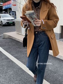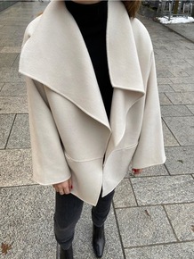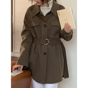 【现货】北欧风T家双面尼短款大衣女大翻领宽松毛呢外...