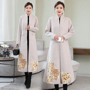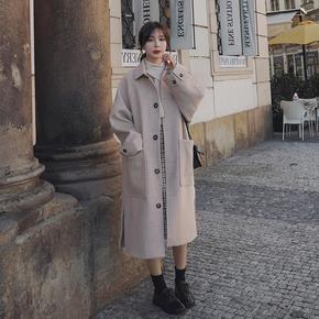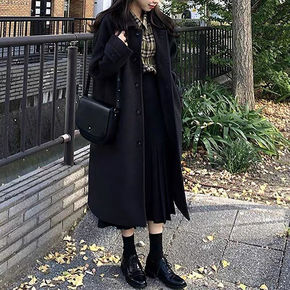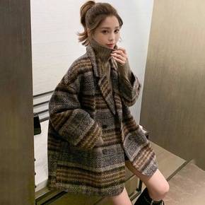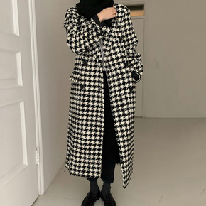 粗花呢子中长款大衣2021秋冬新款韩范宽松风衣加厚...