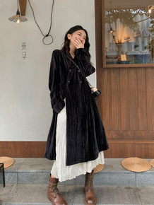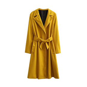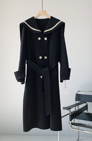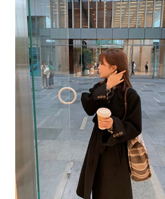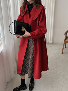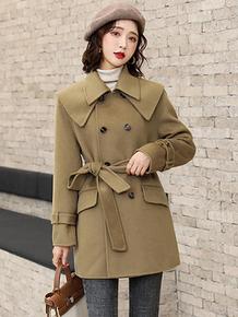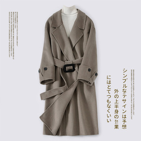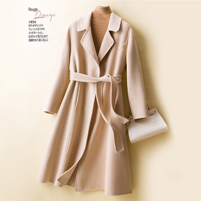 2020秋冬新品 女娃娃领双面呢大衣中长款腰带过膝...